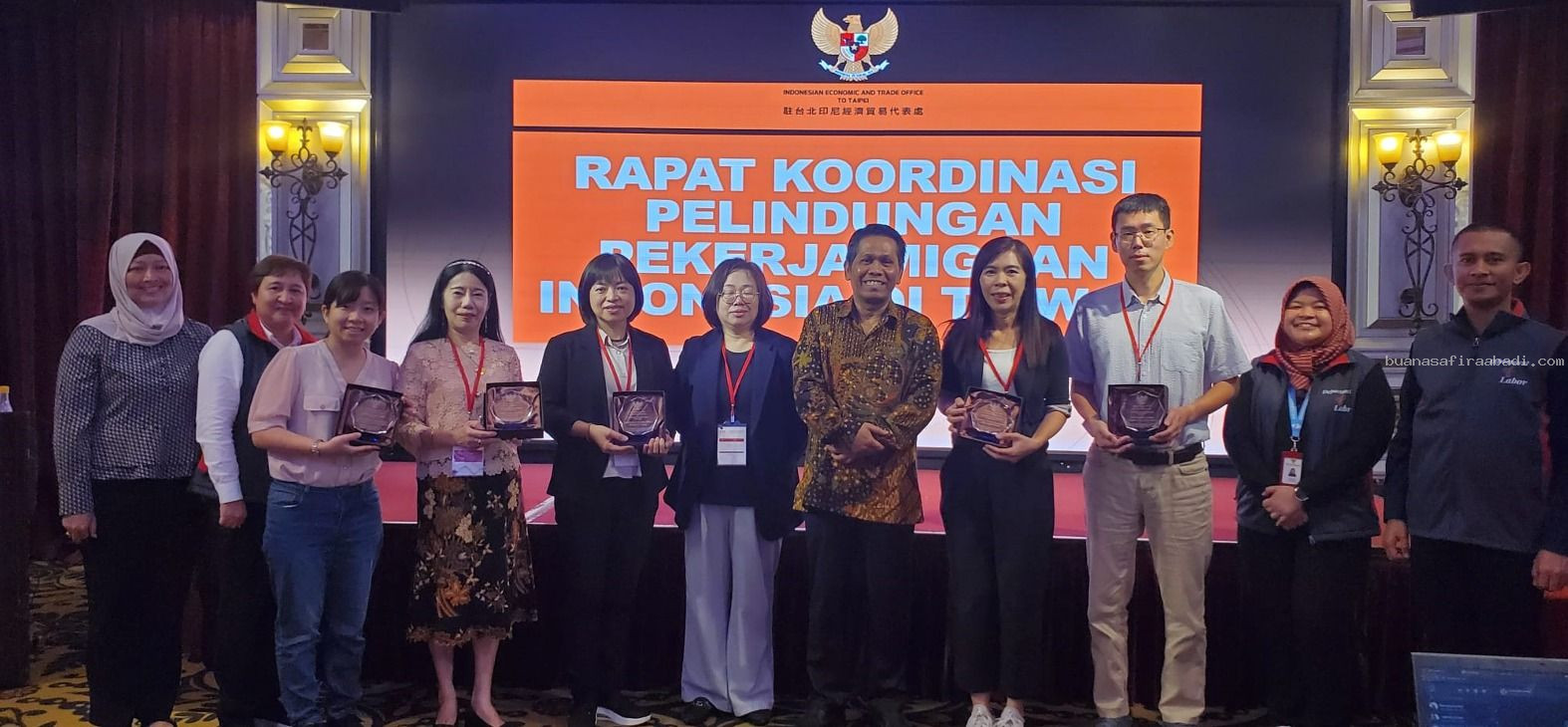 The Coordination Meeting was held by the Indonesian Trade and Economic Committee in Taipei as an effort to increase the protection of Indonesian Migrant Workers in Taiwan as well as representatives from the WDA. This Coordination Meeting was held to increase efforts to increase protection for Indonesian Migrant Workers in Taiwan through speed in providing services to Indonesian Migrant Workers. This coordination meeting also awarded 5 (five) best Department of Manpower awards for their synergy and dedication in handling Indonesian Migrant Workers cases, namely from Changhua County, Hsinchu City, New Taipei City, Pingtung County and Taoyuan City.